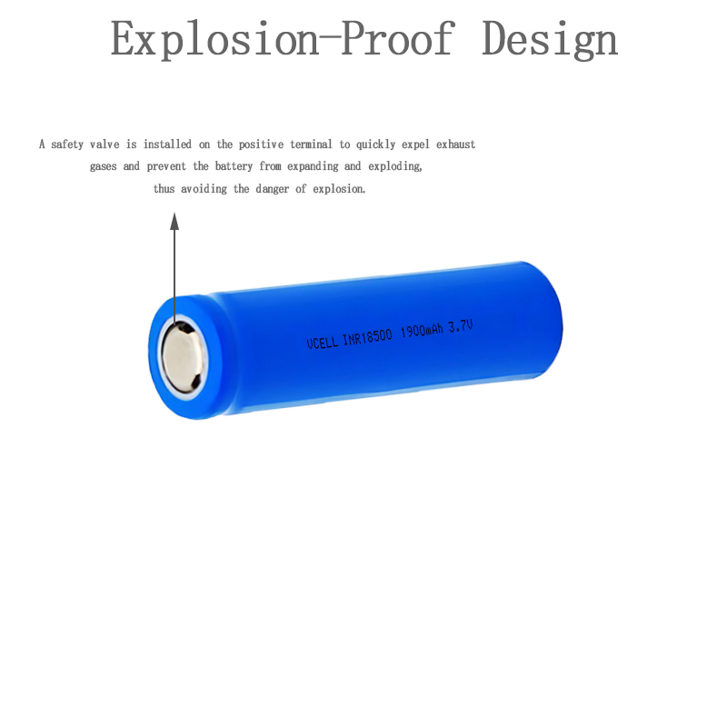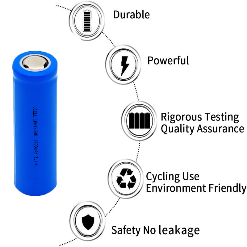 1.VCELL POWER 3.7v 1900mAh INR18500 litiumjonbatteri använder litiumnickel mangan koboltoxidmaterial, som har hög energitäthet och lång batteritid.